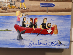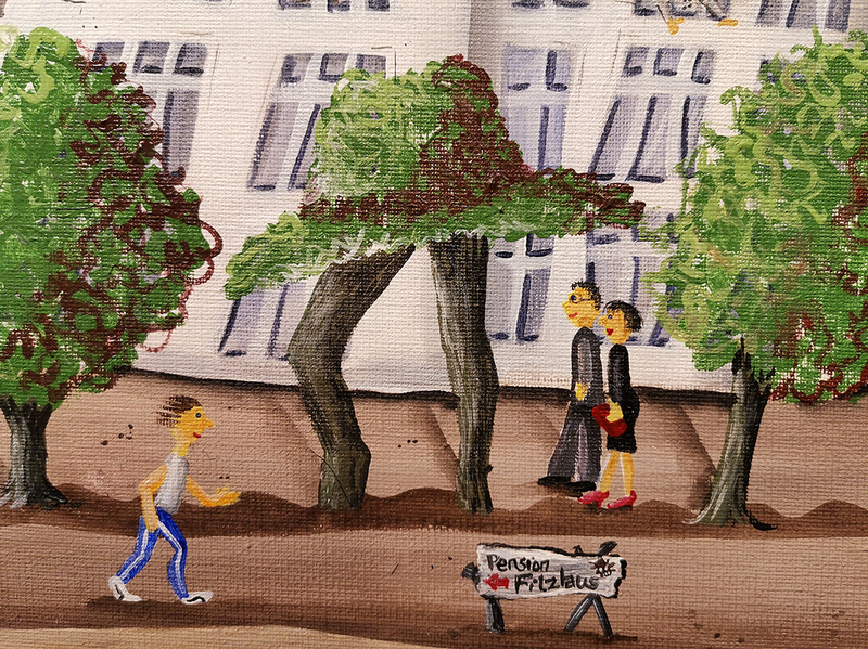 Bei dieser tollen Aktion wollte Gesa nicht mit leeren Händen kommen, sondern hatte die Idee, ein Bild, das einen Bezug zu Udo hat, anzufertigen und für die Udo Lindenberg Stiftung, die sich unter anderem für soziale Projekte in Afrika einsetzt, zu versteigern. Was lag da näher, als das weiße Schloss, in dem Udo seit Jahren wohnt. Gesagt getan, gemalt, Bild eingepackt, auf nach Hamburg und zu einem der drei fantastischen Konzertabende gefahren. Udo war begeistert, hat das Bild mit einem Udogramm versehen und nun sucht es einen neuen Besitzer.